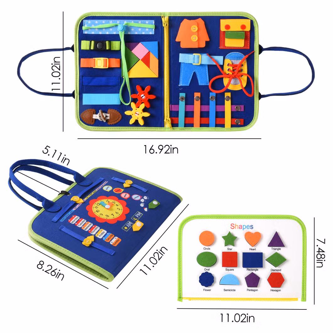 | Nombre del producto | 2023 niños nuevos Educación temprana Montessori Toys Toys Toys Toddler Busy Board Juguetes sensoriales para niños actividades múltiples Libros de mesa de fieltro ocupado |